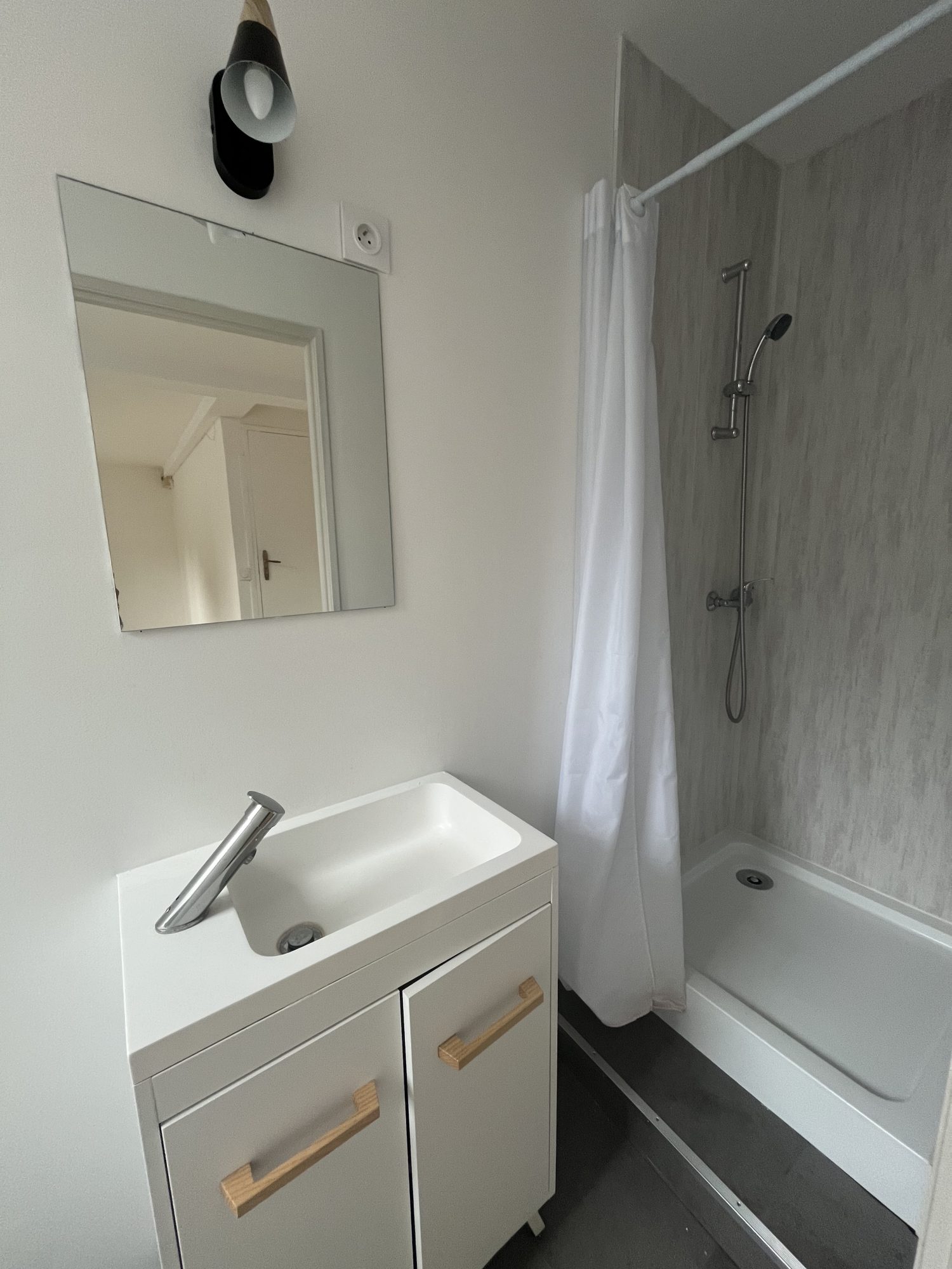 - Salle d'eau avec douche, meuble vasque et WC